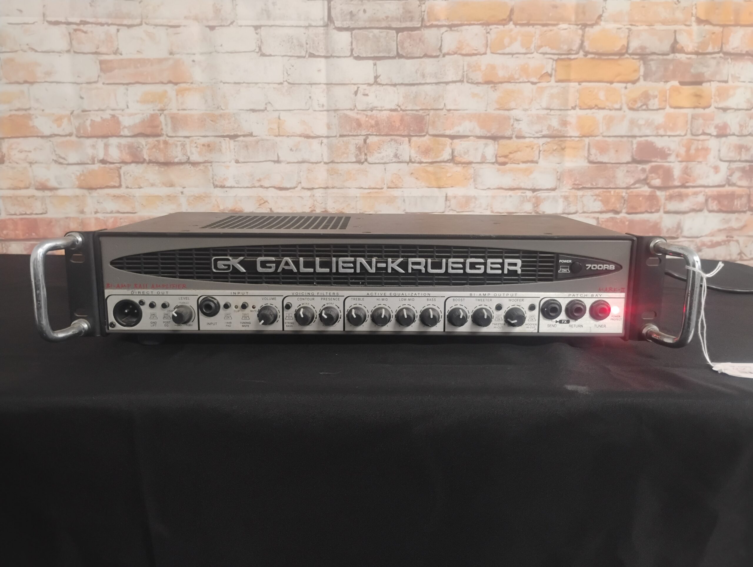 This Gallien-Krueger 700RB has been tested and works as it should. There are some scuffs and scratches from being used but nothing that affects functionality.